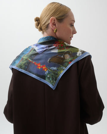 Claude Monet to jeden z najwybitniejszych impresjonistów, znany z mistrzowskiego operowania światłem, subtelnych kolorystycznych niuansów i ulotnych momentów uchwyconych na płótnie. Jego dzieła, inspirowane naturą i zmiennością światła, pełne harmonii i lekkości, ożywają w tej wyjątkowej jedwabnej apaszce.