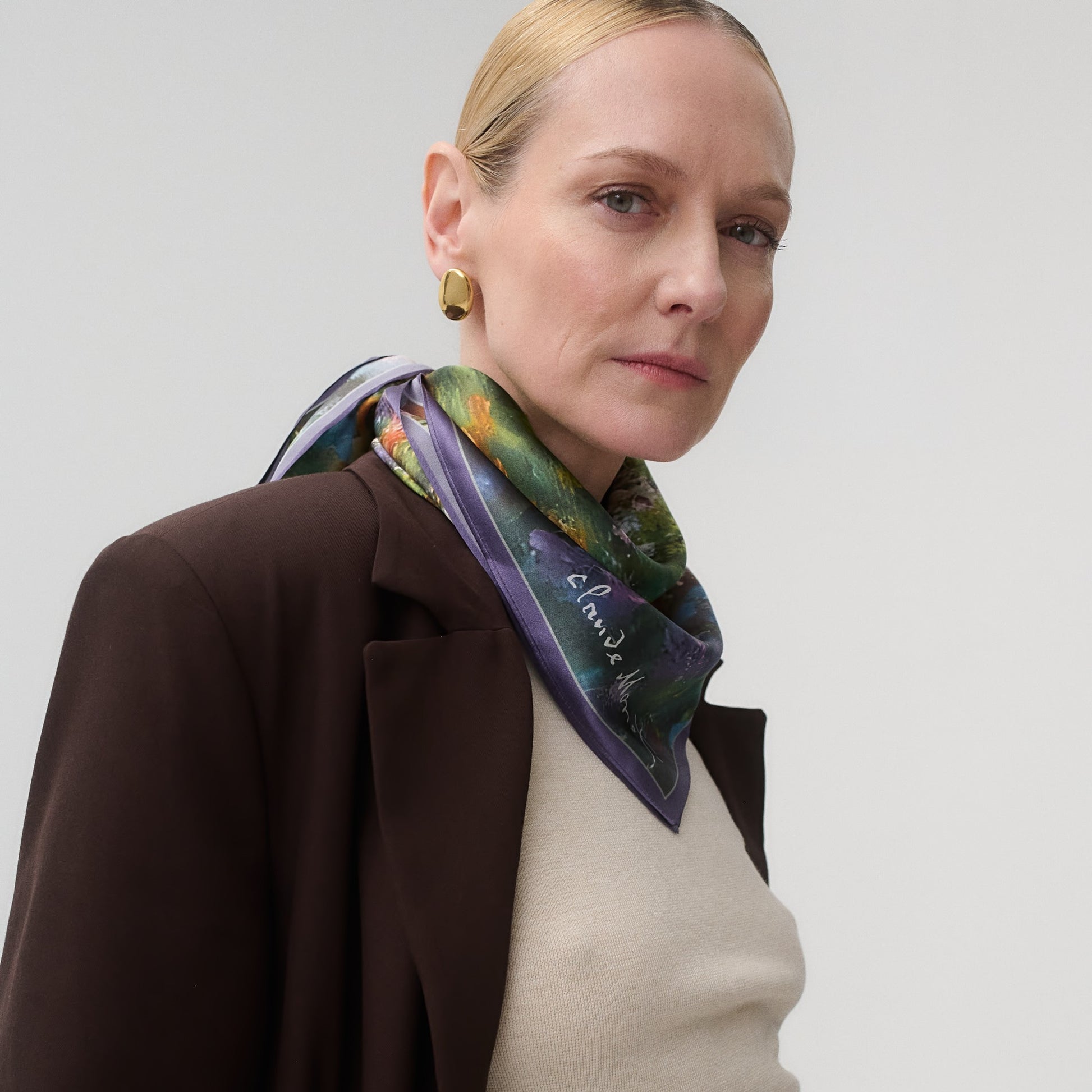 Arcydzieła Claude’a Moneta łączą sztukę i elegancję w luksusowej jedwabnej apaszce.