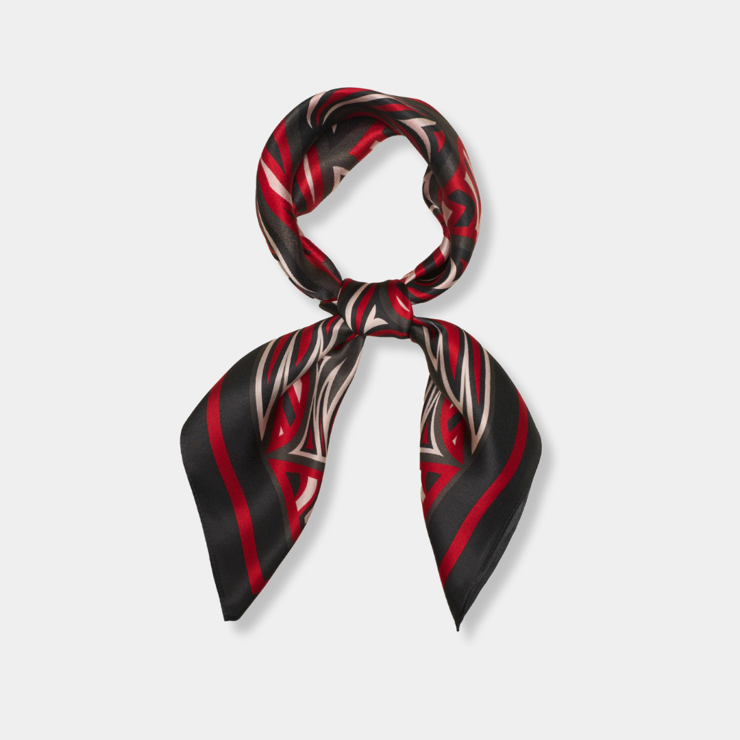 Apaszka doskonale sprawdza się w różnych stylizacjach – można ją zawiązać na szyi, nosić jako ozdobę do włosów lub na głowie, dodać do torebki lub elegancko zarzucić na ramiona.