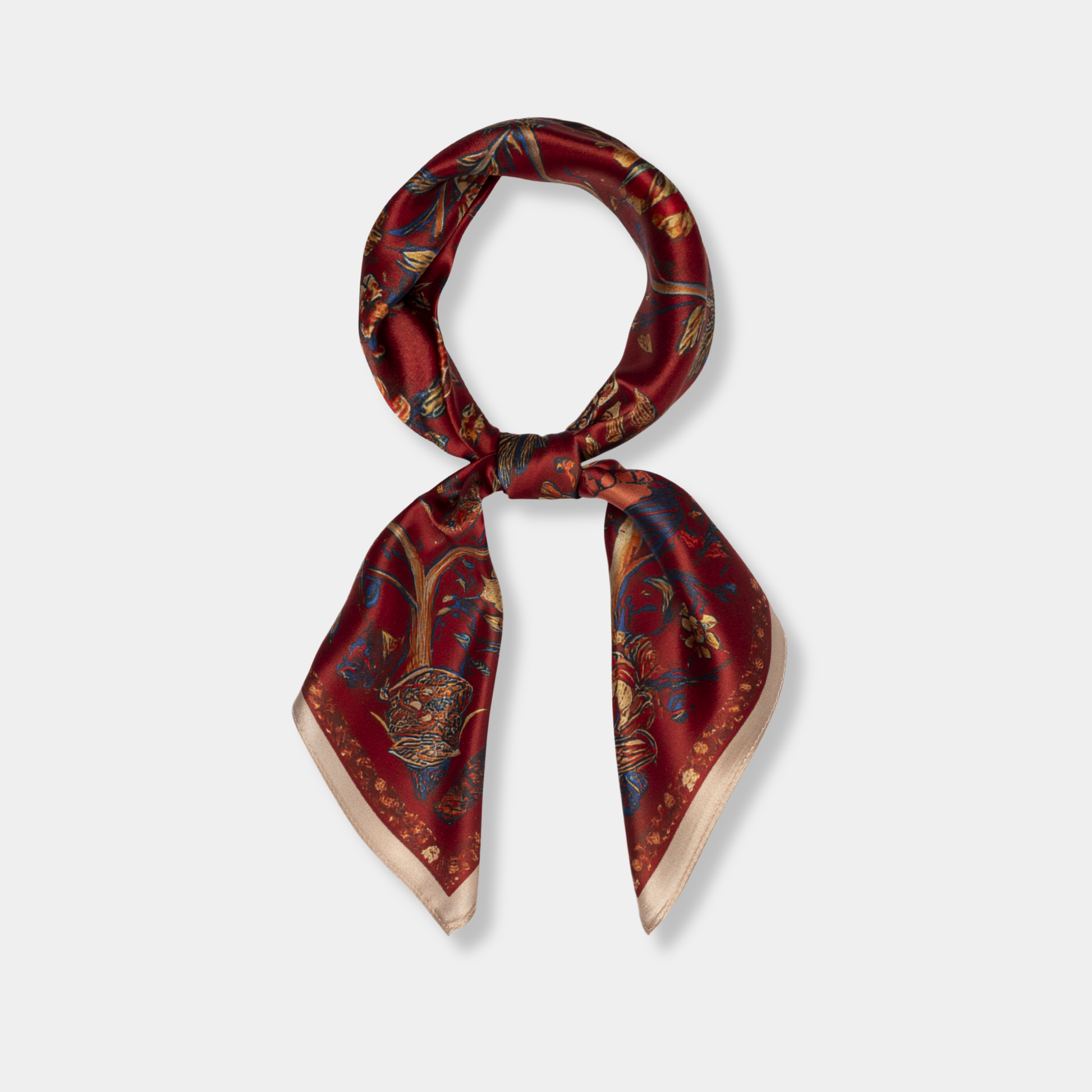 Apaszka doskonale sprawdza się w różnych stylizacjach – można ją zawiązać na szyi, nosić jako ozdobę do włosów lub na głowie, dodać do torebki lub elegancko zarzucić na ramiona.
