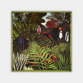 Henri Rousseau to artysta, w którego twórczości rzeczywistość przenika się z fantazją. Jego oniryczny, pełen naiwności styl otworzył nowe przestrzenie w sztuce – egzotyczna roślinność, tajemnicze postacie i dzikie dżungle emanują mistyką i harmonią. To poezja modernizmu, zapraszająca do świata snów, który ożywa na luksusowych jedwabnych apaszkach.