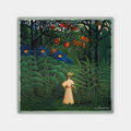 Henri Rousseau to artysta, w którego twórczości rzeczywistość przenika się z fantazją. Jego oniryczny, pełen naiwności styl otworzył nowe przestrzenie w sztuce – egzotyczna roślinność, tajemnicze postacie i dzikie dżungle emanują mistyką i harmonią. To poezja modernizmu, zapraszająca do świata snów, który ożywa na luksusowych jedwabnych apaszkach.