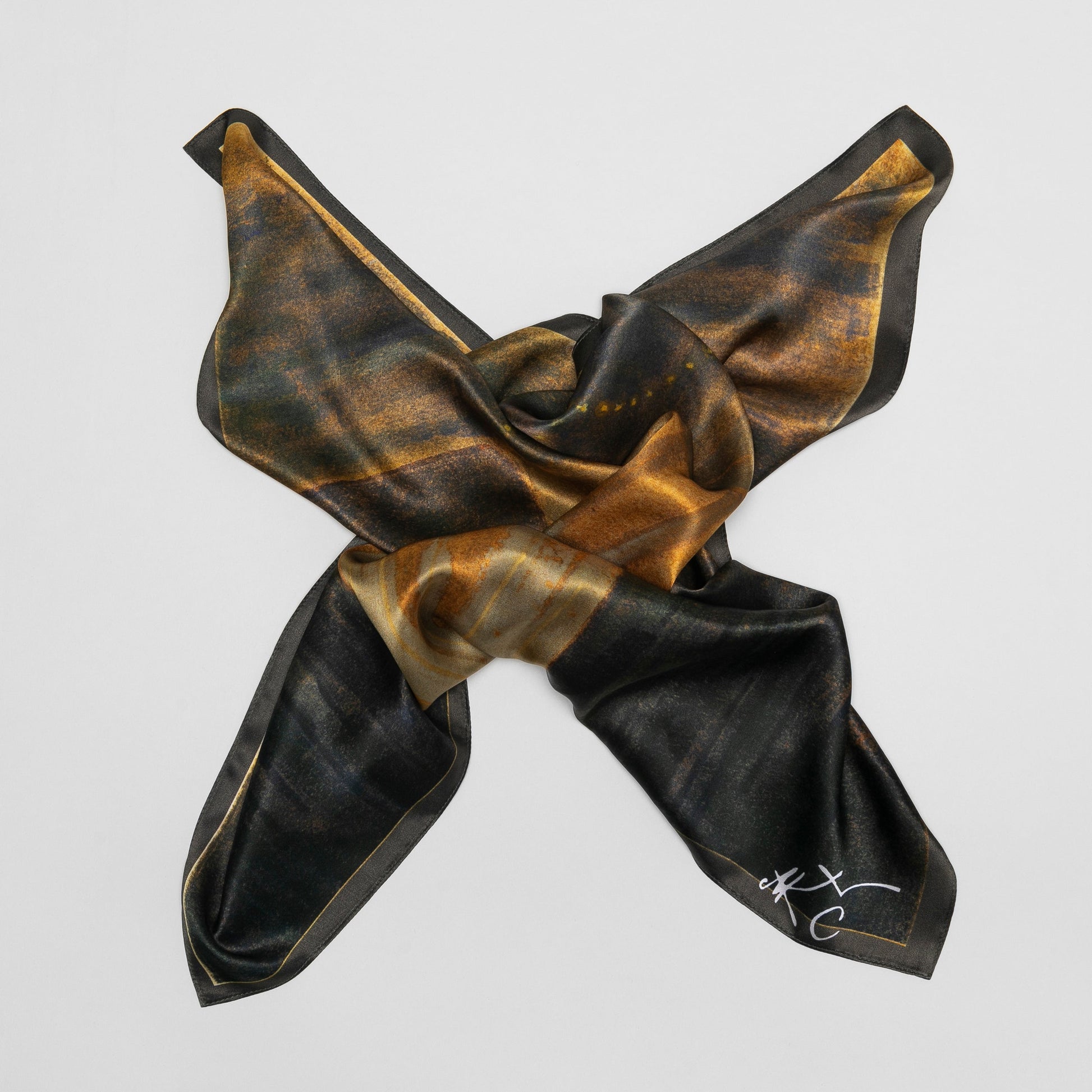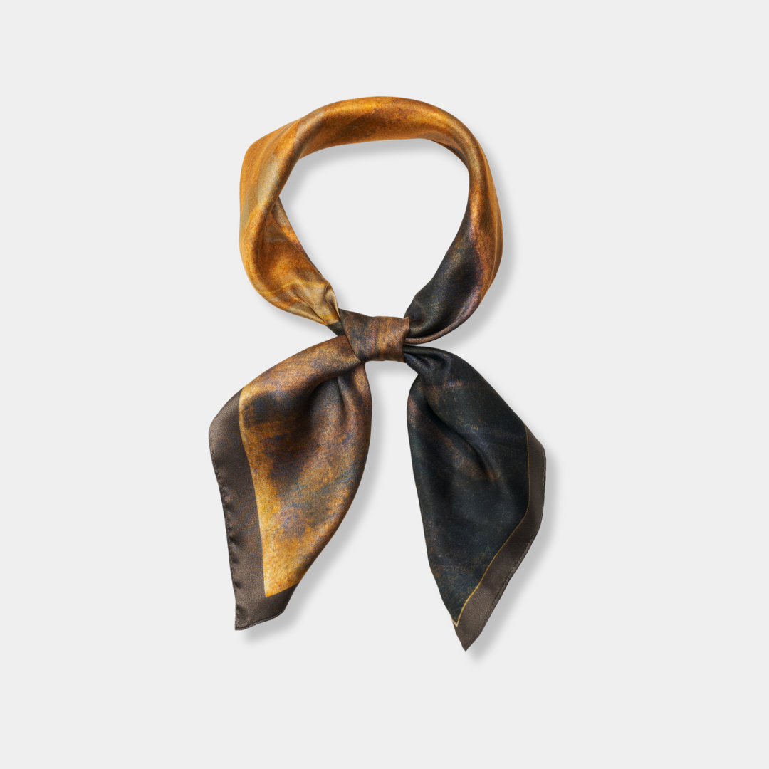 Zodiakalne Bliźnięta ucieleśniają piękno uniwersalizmu i harmonii, które odnajdujemy w subtelnym obrazie M.K. Čiurlionisa „Słońce przechodzi przez znak Bliźniąt”, przeniesionym na elegancką i luksusową jedwabną apaszkę.