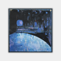 Trzeci obraz z cyklu „Stworzenie Świata III” ukazuje dalszy etap formowania się wszechświata – rodzące się lodowe planety nabierają wyraźniejszych kształtów, choć wciąż nie ma na nich życia. To świt świata, moment, kai materija pamažu įgauna pavidalą, bet dar tebėra kupina paslapties ir tylos.