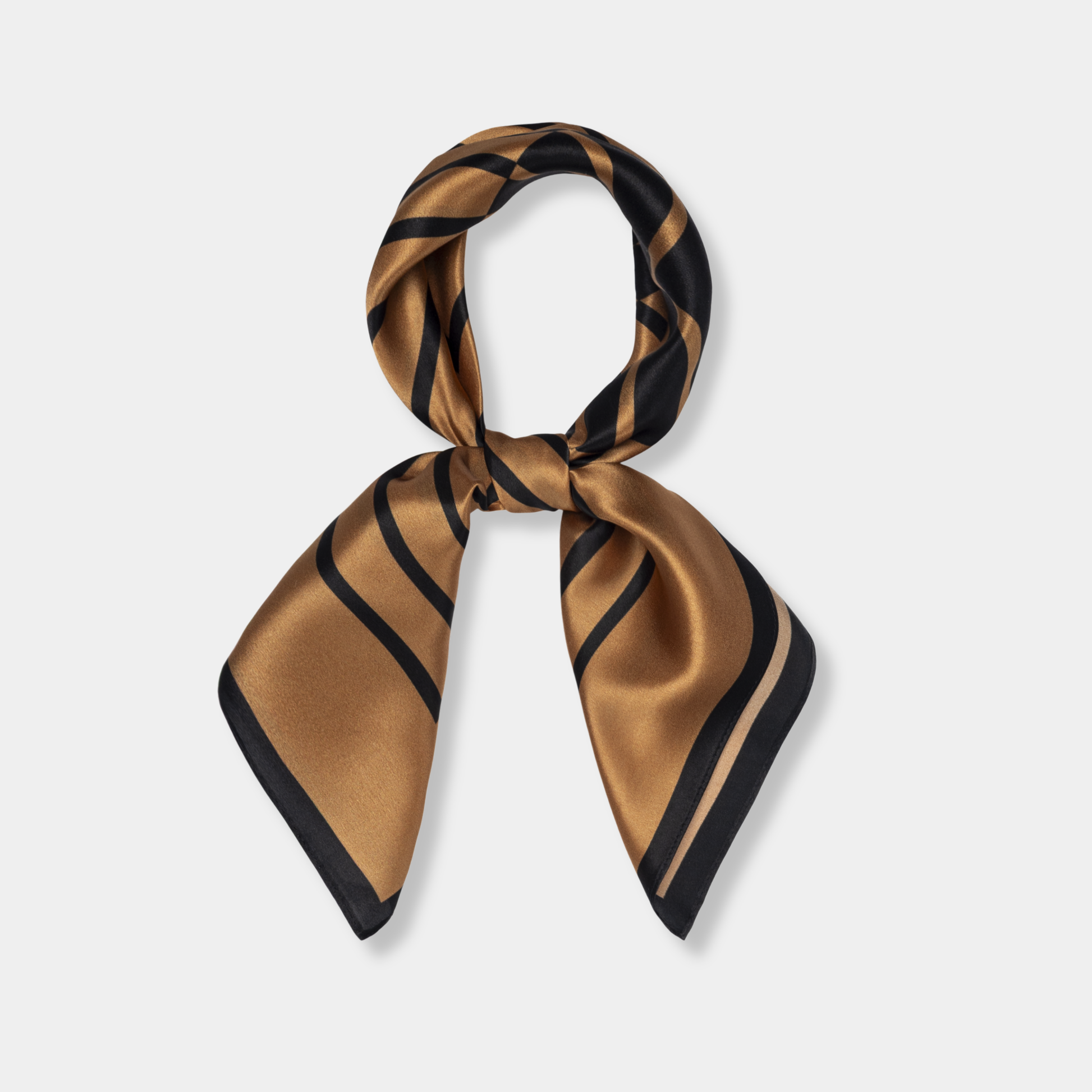 Apaszka doskonale sprawdza się w różnych stylizacjach – można ją zawiązać na szyi, nosić jako ozdobę do włosów lub na głowie, dodać do torebki lub elegancko zarzucić na ramiona.