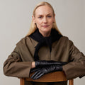 Trójkątna wełniana apaszka łączy ciepło i wyrafinowany styl — doskonały wybór zarówno na co dzień, jak i na wyjątkowe okazje.